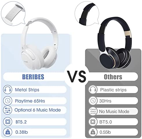 Bluetooth Headphones Over Ear,BERIBES 65H Playtime and 6 EQ Music Modes Wireless Headphones with Microphone,HiFi Stereo Foldable Lightweight Headset, Deep Bass for Home Office Cellphone PC TV (White)