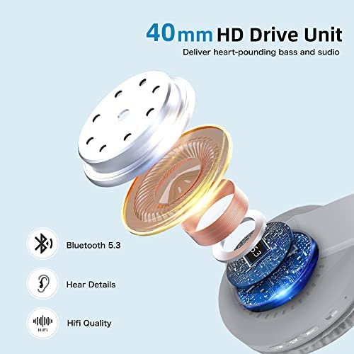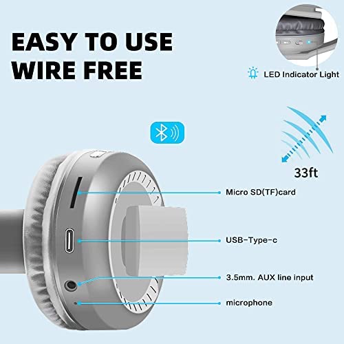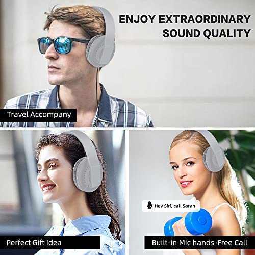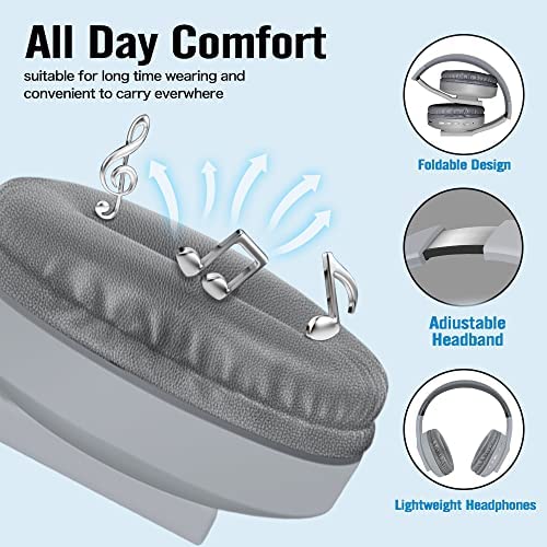 MOYICOW Bluetooth Headphones Over Ear with Microphone,Foldable Wireless and Wired Stereo Headset Micro SD/TF,FM,Soft Earmuffs &Light Weight for Prolonged Wearing (Grey)
