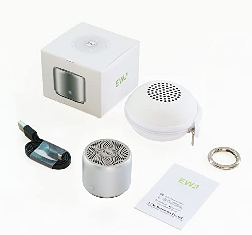 Introducing the Travel Case Packed Wireless Mini Bluetooth Speaker with Custom Bass Radiator by EWA A106- the next generation of portable speakers that are perfect for home, outdoors and shower use. With a compact and sleek silver design, this small but loud speaker packs a powerful punch, delivering high-quality sound with impressive bass.